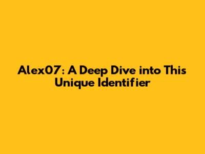 Alex07: A Deep Dive Into This Unique Identifier