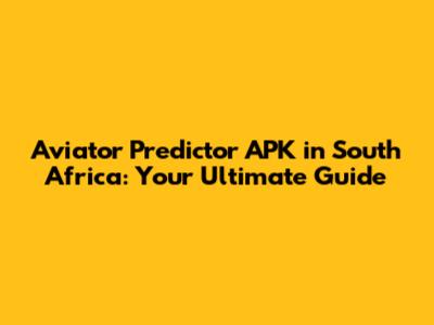 Aviator Predictor APK In South Africa: Your Guide
