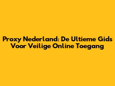 Proxy Nederland: De Ultieme Gids Voor Veilige Online Toegang