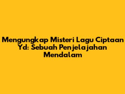 Mengungkap Misteri Lagu Ciptaan Yd: Sebuah Penjelajahan Mendalam