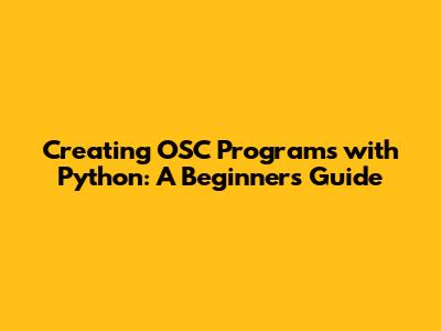 Creating OSC Programs With Python: A Beginner's Guide