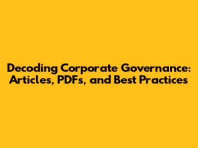 Decoding Corporate Governance: Articles, PDFs, And Best Practices