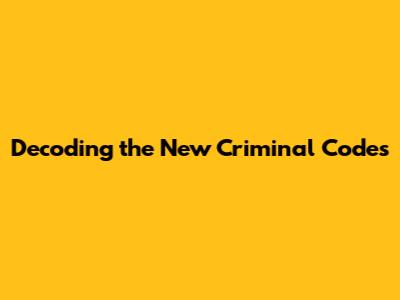 Decoding The New Criminal Codes