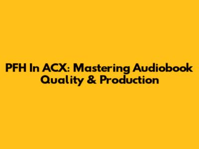 PFH In ACX: Mastering Audiobook Quality & Production