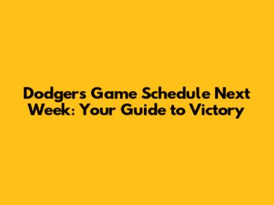 Dodgers Game Schedule Next Week: Your Guide To Victory