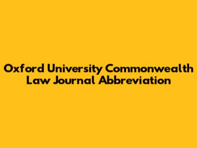 Oxford University Commonwealth Law Journal Abbreviation