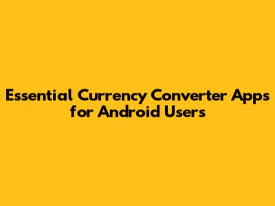 Essential Currency Converter Apps For Android Users