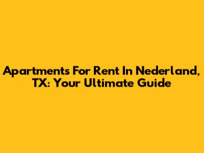 Apartments For Rent In Nederland, TX: Your Ultimate Guide