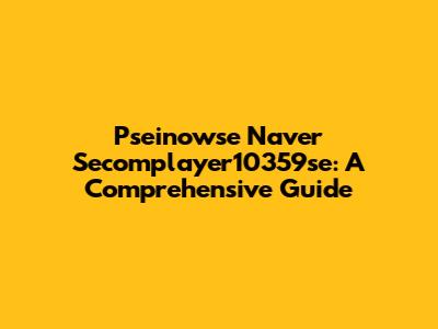 Pseinowse Naver Secomplayer10359se: A Comprehensive Guide