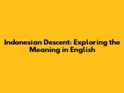 Indonesian Descent: Exploring The Meaning In English