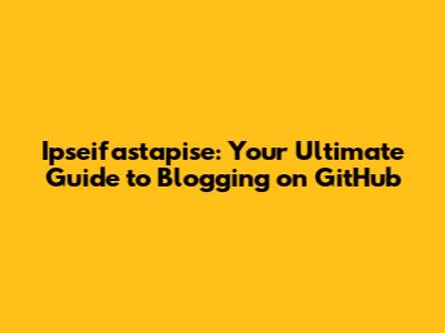 Ipseifastapise: Your Guide To Blogging On GitHub