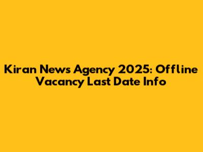 Kiran News Agency 2025: Offline Vacancy Last Date Info