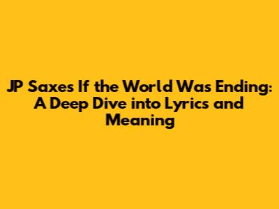 Hey music lovers! Ever gotten chills listening to a song? That's definitely the experience with JP Saxe's heart-wrenching ballad, "If the World Was Ending." This track, featuring the amazing Julia Michaels, has captured the hearts of millions, and for good reason. It's raw, it's real, and it taps into those deep-seated human emotions we all understand. But have you ever truly delved into the lyrics? Let's dive deep into the world of "If the World Was Ending," dissecting the lyrics, exploring their meaning, and uncovering why this song resonates so profoundly. We'll be breaking down everything, from the initial spark of the song to its enduring popularity, and we'll even touch upon how it's become a symbol of connection and support. So, grab your headphones, and let's get started, because, guys, this is going to be an awesome journey!
