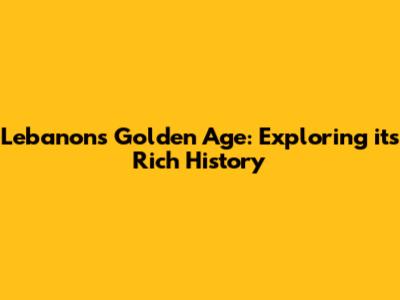 Lessons from Lebanon's Golden Age