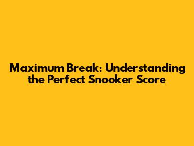 Maximum Break: Understanding The Perfect Snooker Score