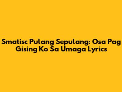 Smatisc Pulang Sepulang: "Osa Pag Gising Ko Sa Umaga" Lyrics