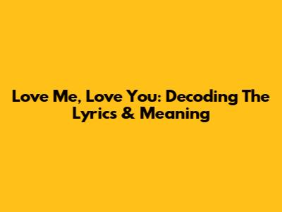 Love Me, Love You: Decoding The Lyrics & Meaning