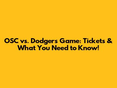 OSC Vs. Dodgers Game: Tickets & What You Need To Know!