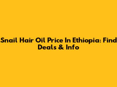 Snail Hair Oil Price In Ethiopia: Find Deals & Info