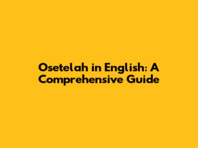 Understanding "Osetelah": The Basics