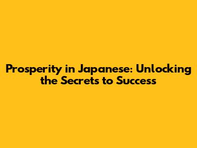 Prosperity In Japanese: Unlocking The Secrets To Success