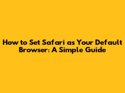 Step-by-Step Guide to Setting Safari as Your Default Browser on macOS