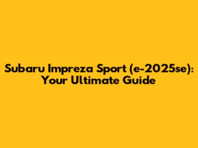 Hey car enthusiasts! Are you guys ready to dive deep into the world of the Subaru Impreza Sport (e-2025se)? This guide is your one-stop shop for everything you need to know about this popular compact car. We'll cover it all, from the specs and features to the driving experience and what sets it apart. Let's get started!