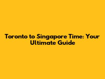 Understanding the Time Difference: Toronto and Singapore