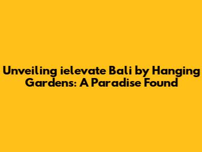 Unveiling Ielevate Bali By Hanging Gardens: A Paradise Found