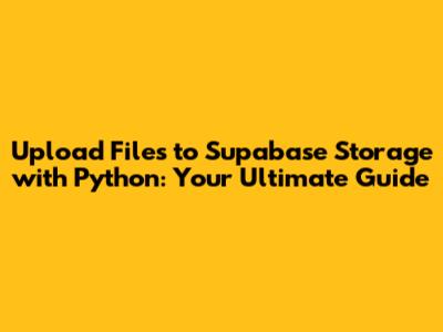 By following the steps and best practices outlined in this guide, you're well on your way to mastering Supabase Storage with Python. Happy coding, and may your uploads be swift and your data secure!