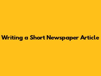 Writing A Short Newspaper Article